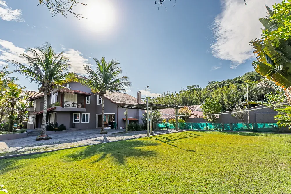 Com 340 m² de área construída e um amplo terreno de 840 m² a casa oferece espaços amplos e bem distribuídos, com vista para a Lagoa da Conceição de quase todas as janelas.