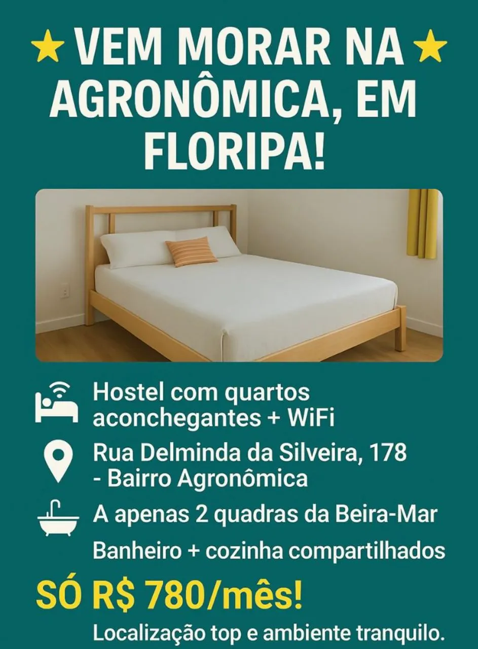 Alugo quartos individuais em hostel na Agronômica a 2 quadras do Supermercado Angeloni da Av Beira Mar em Florianópolis.