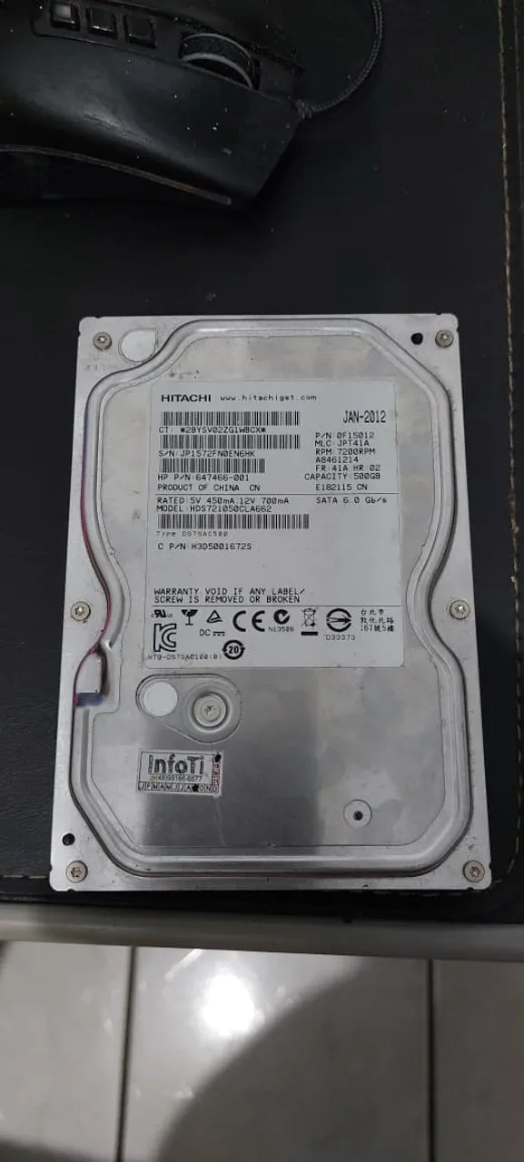 HD Hitachi de 500GB. Funcionando perfeitamente, já formatado e limpo. Entrega na região da UFSC e/ou região do Aero.