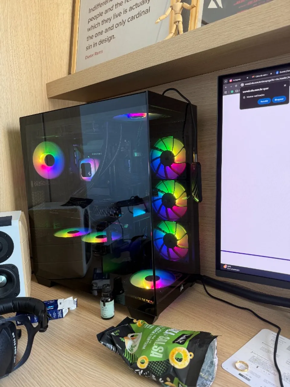 Gabinete com 10 fans sendo 7 Ventoinha Corsair RS120, 1 deepcool e 2 arctic silver no water cooler