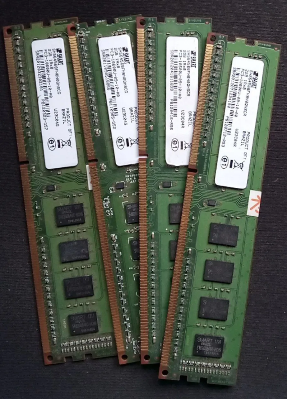 DOAÇÃO de 4 pentes de memória ram com 2Gb cada uma. PC3-10600U-09-10-A0