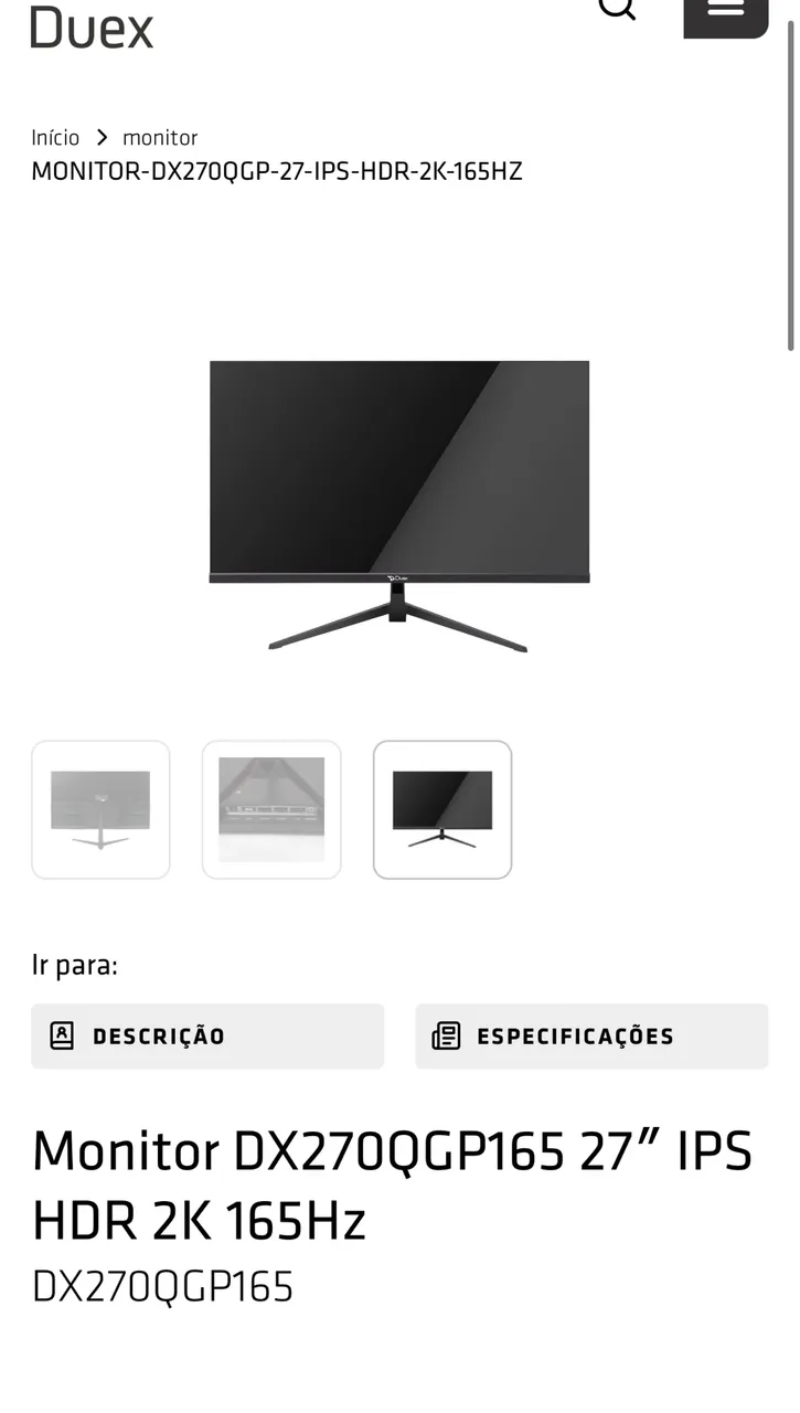 Monitor novo na caixa 165hz no DP Não troco Entrego com taxa