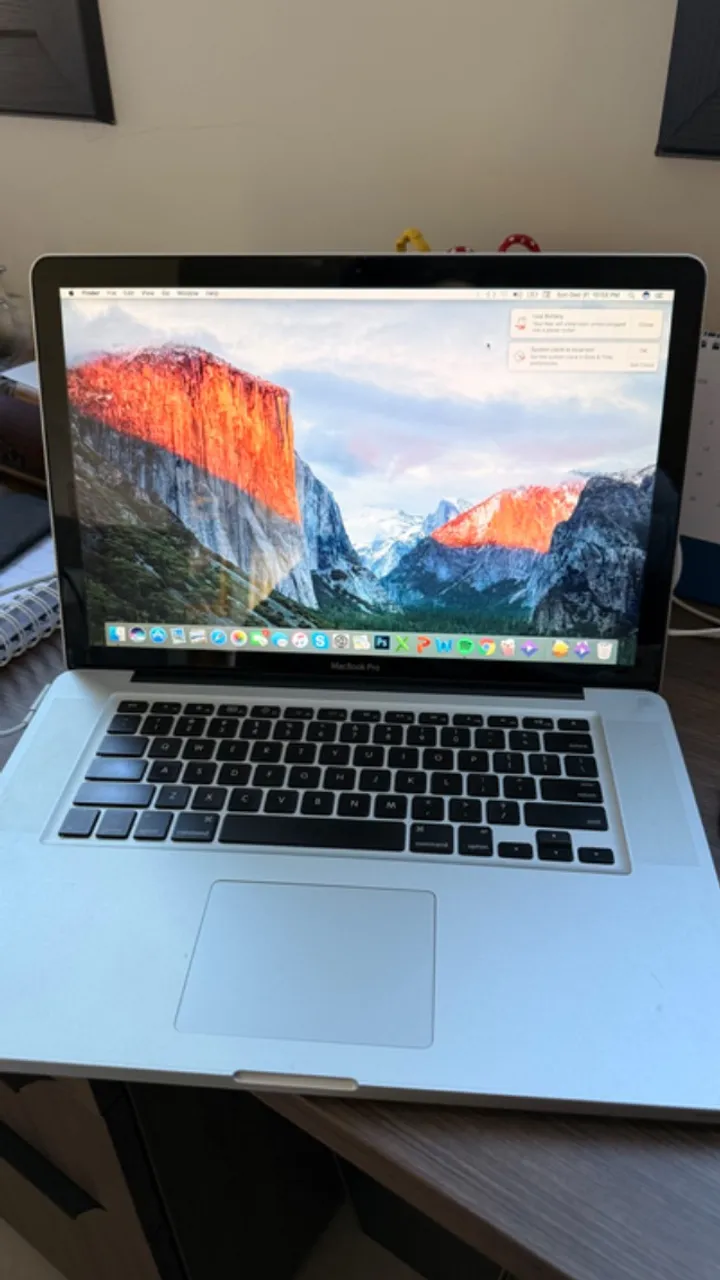 Macbook 15" Mid 2012 com processador Intel i5 de 2.4 GHz. O hardware encontra-se com problema, ele não segura o pc ligado, e a bateria foi retirada porque estufou. Porém é possível aproveitar todas as outras partes que estão funcionando perfeitamente, como por exemplo: pad, teclado. tela...