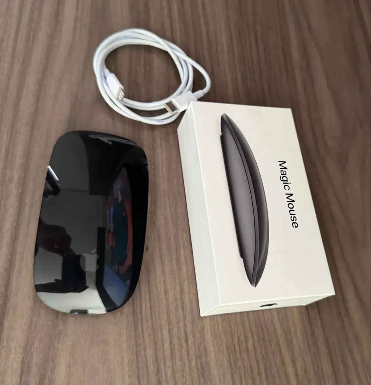 Mouse sem fio Apple Magic Mouse 2 na cor Space Gray. Design elegante e ergonômico, perfeito para quem busca precisão e conforto.