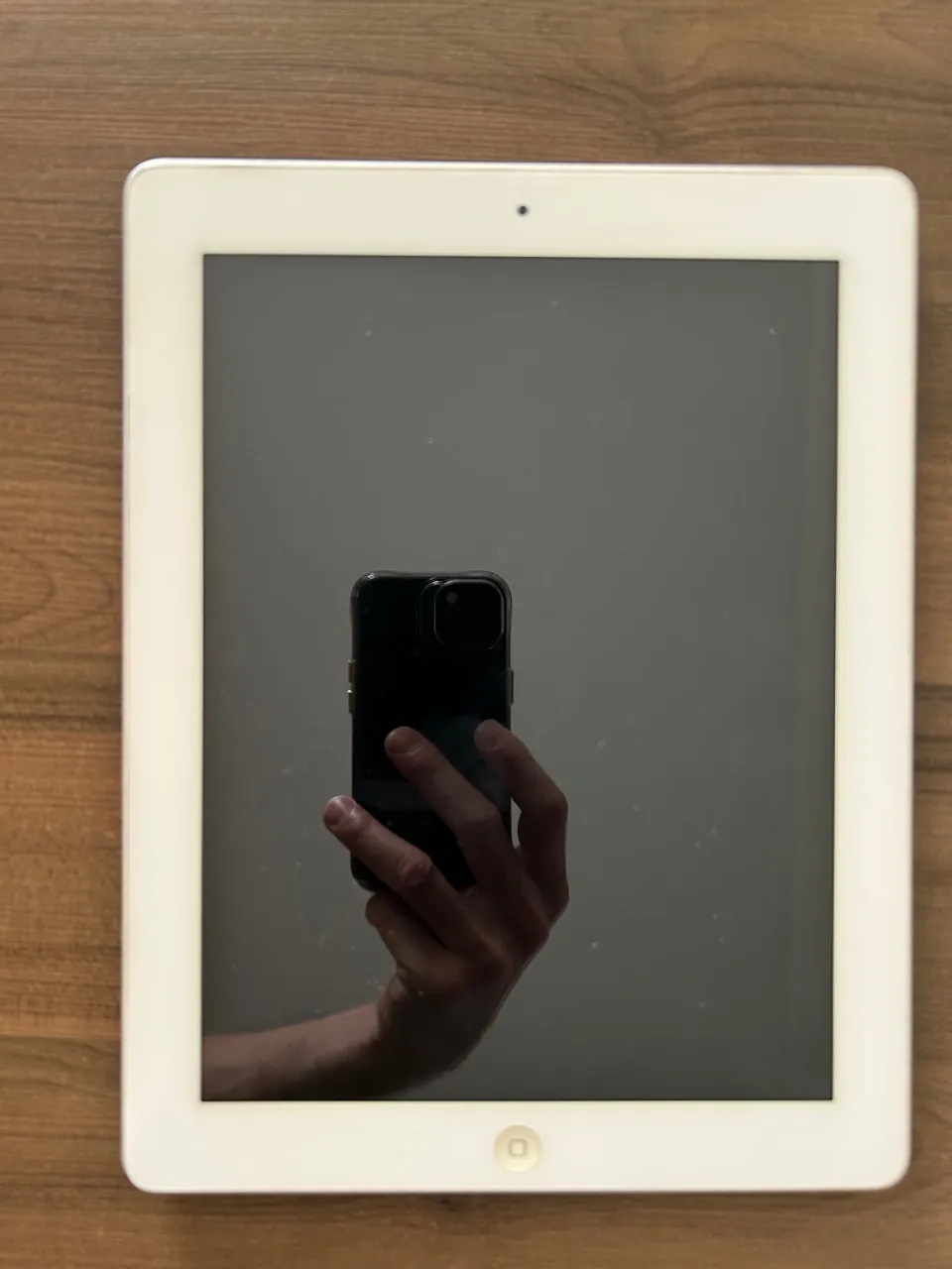 Ipad está sem ligar a muito tempo provavelmente a bateria se esgotou, tela inteira com aranhões na parte trás.