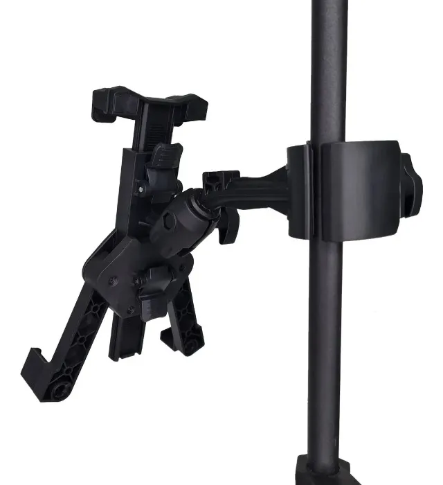 - Possui Clamp resistente para fixação, idealmente, em pedestais de microfone para facilitar as apresentações, melhorando a estética do palco, ao manter os equipamentos organizados e auxiliando na segurança do tablet, deixando ele sempre fixo no pedestal.