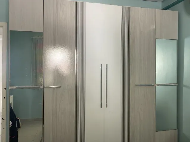 Guarda-roupa espaçoso e elegante, 06 portas com espelhos nas portas laterais, perfeito para organizar suas roupas com estilo. Design moderno e funcional, ideal para otimizar o espaço do seu quarto.