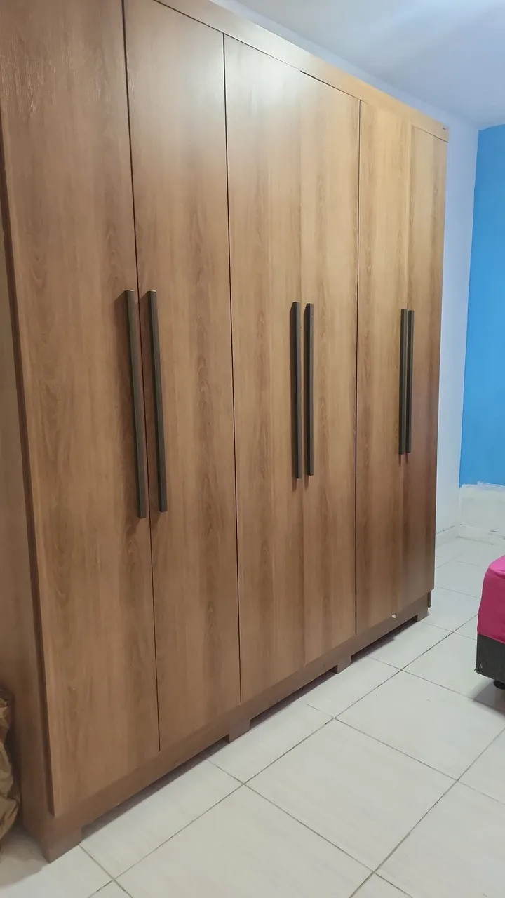Roupeiro em madeira, design moderno e amplo espaço interno, poucas marcas de uso. 1 ano de uso.