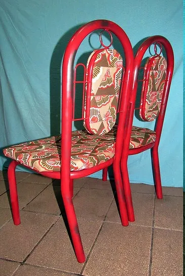 Arte funcional elaborada com duas Cadeiras de Ferro em tamanho padrão devidamente presas e restauradas se transformando em um banco para dois lugares por CriArteDecor.