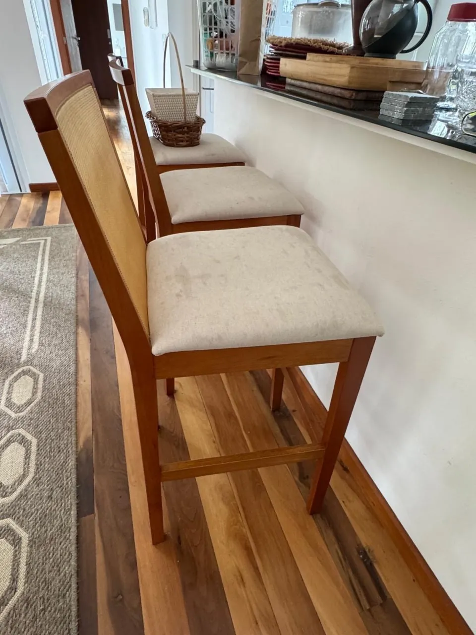 3 Banquetas elegantes e confortáveis para sua cozinha ou espaço gourmet. Design moderno e materiais de alta qualidade para um ambiente sofisticado.