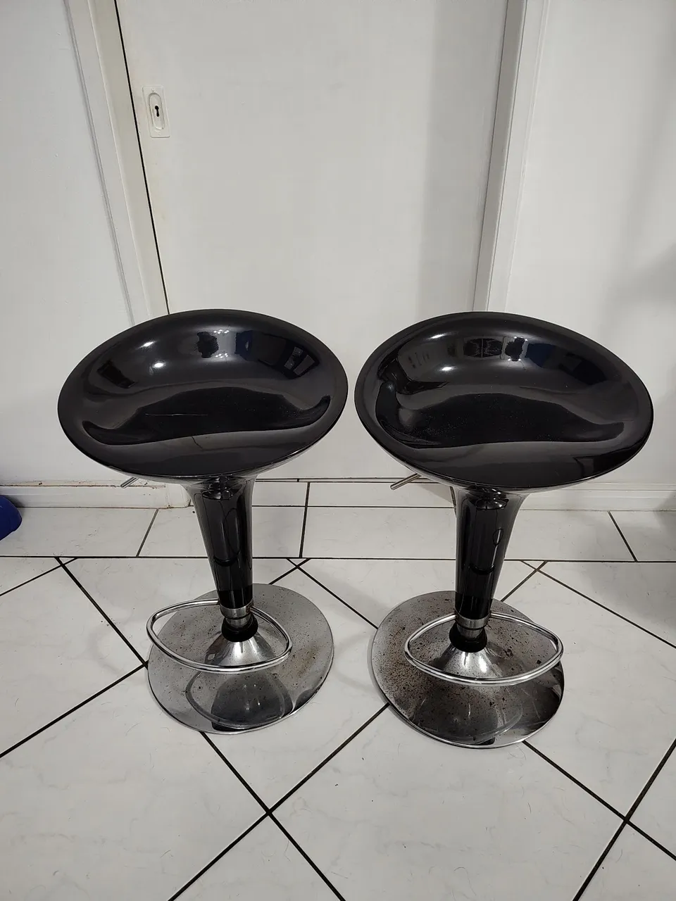 Conjunto de banquetas pretas. 1 peças com trincado, porém não interfere no uso.