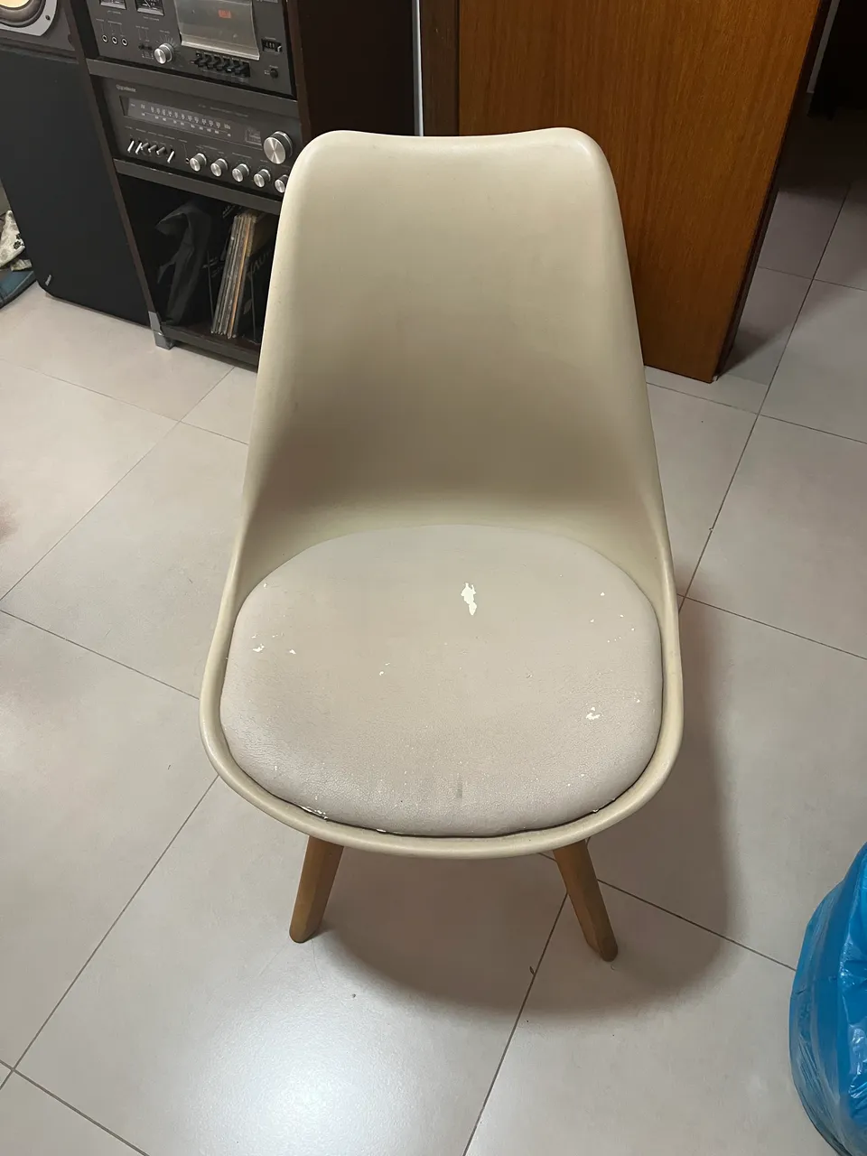 Cadeira com pequenas marcas pois o courino acaba desgastando com o tempo. Restante da cadeira está inteira.