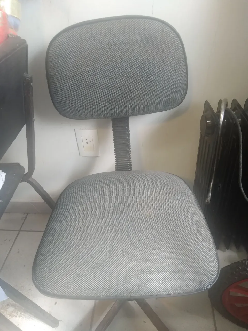 Cadeira de escritório cinza em ótimo estado, ideal para home office ou escritório. Assento e encosto estofados, estrutura resistente e giratória.