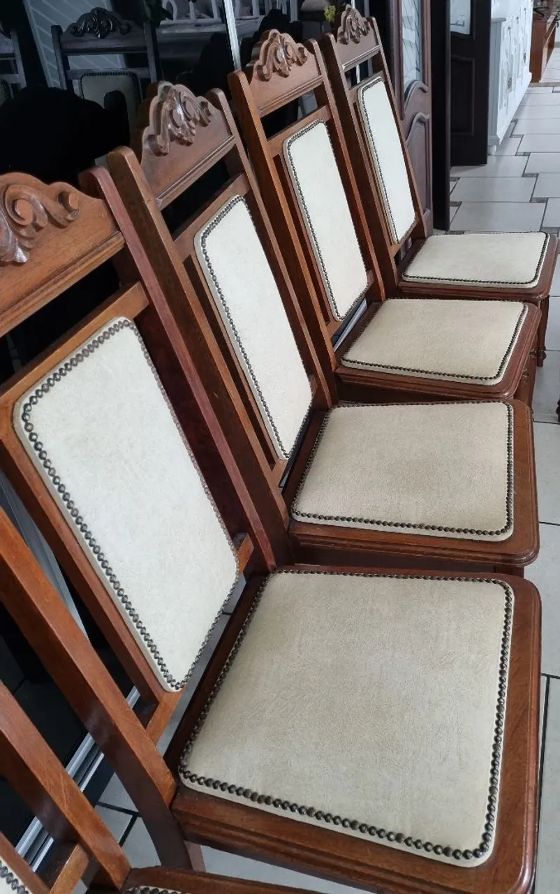Conjunto de cadeiras antigas com design clássico e elegante. Perfeitas para adicionar um toque de requinte à sua sala de jantar ou qualquer ambiente. Tenho 8, mas tbm vendo em 4. Tecido mesclado impermeável. 250 cada ou 1800 todas.