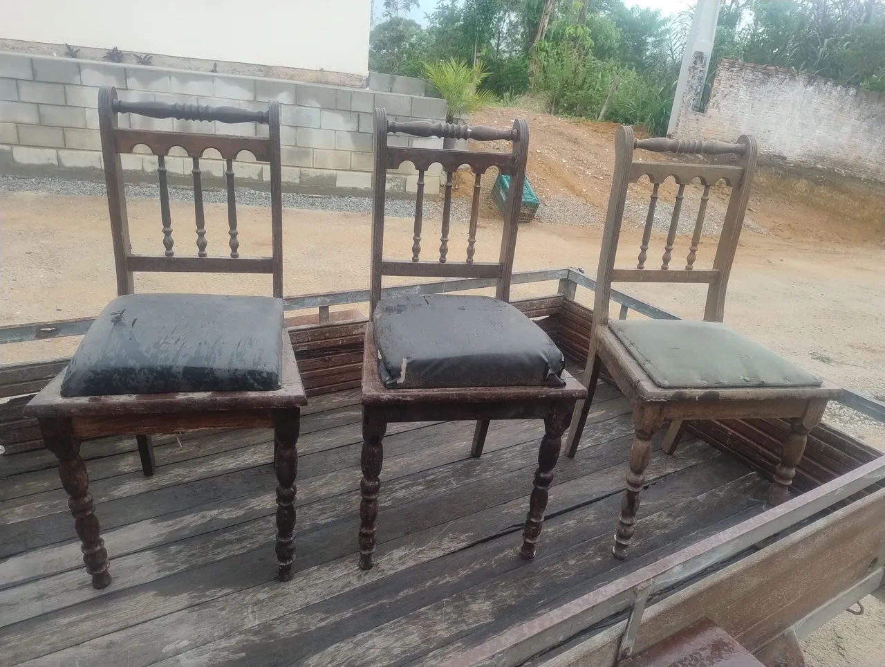 Conjunto de cadeiras antigas com design clássico, ideal para adicionar um toque vintage à sua casa. Perfeitas para quem busca um móvel com história e personalidade. Ideal para reformar e personalizar!