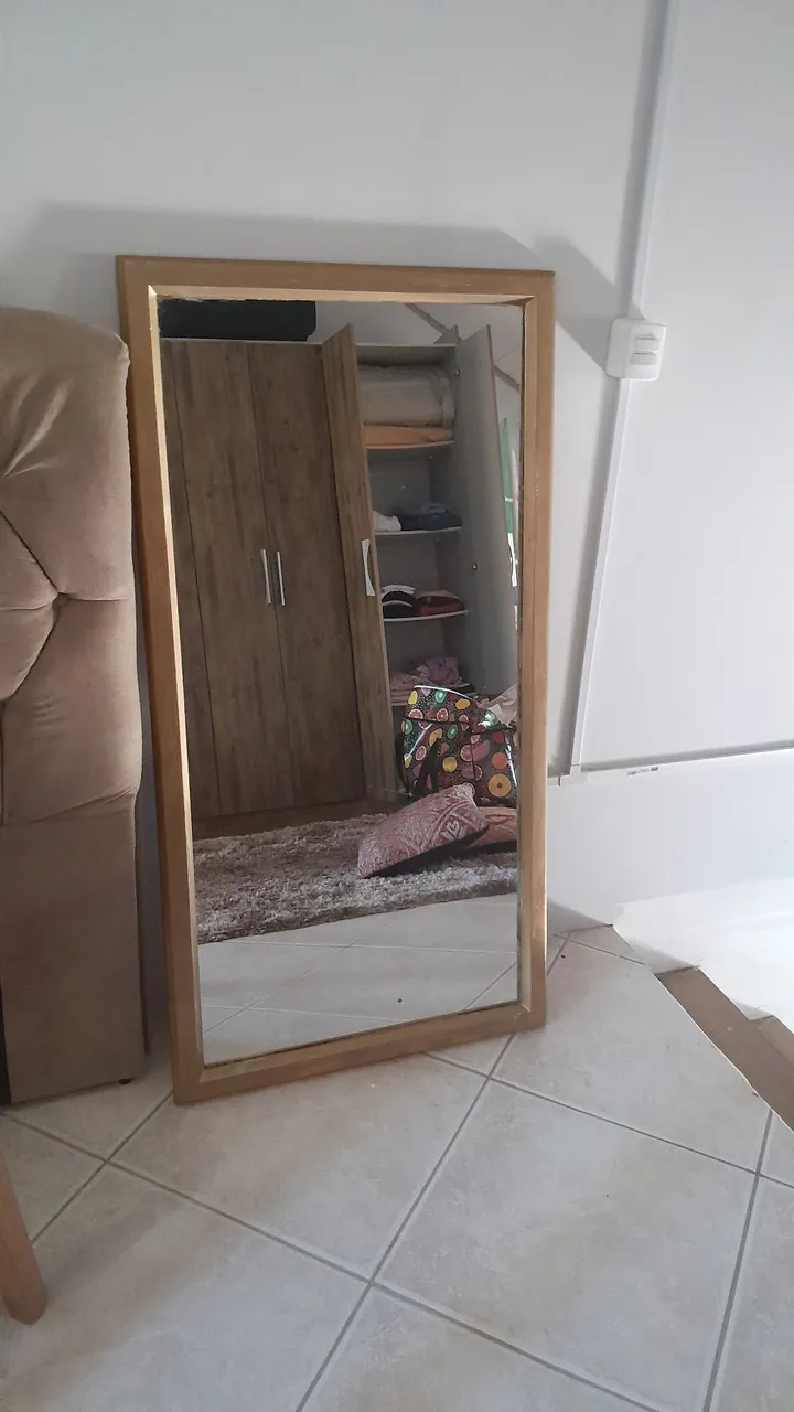 Espelho de madeira com design elegante e sofisticado. Perfeito para complementar a decoração da sua casa.