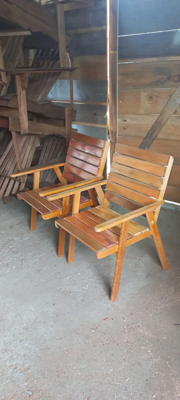 Lindas cadeiras de madeira com design rústico. Perfeitas para sua varanda, área de lazer ou sala de jantar. Madeira maciça eucalipto vermelho selecionado. Alta durabilidade, acabamento com verniz proteção u.v.