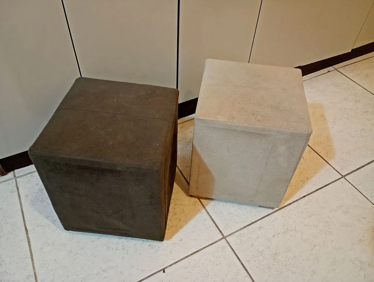 São 2 puffs um marrom e um bege como nas fotos em no perfeito estado sem nenhuma avaria.