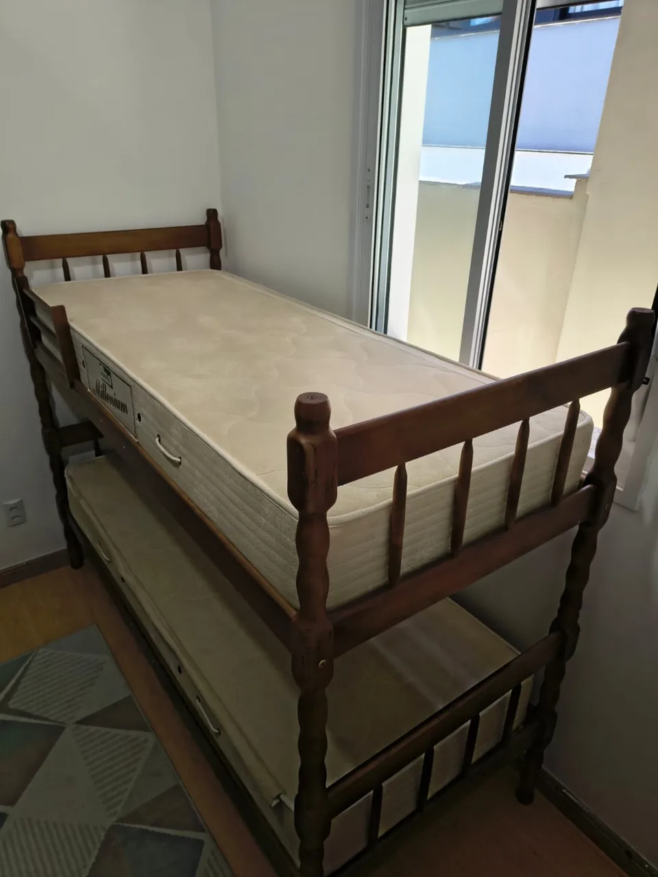 Beliche de madeira, ideal para otimizar espaço em quartos e proporcionar conforto. Design clássico e resistente, perfeito para o quarto das crianças ou para acomodar hóspedes. Incluindo dois colchões bons usados beliche nova, frete por conta do comprador retirar em coqueiros!