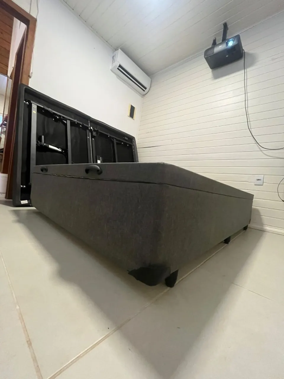 Aproveite ao máximo o espaço do seu quarto com este box baú casal. Design moderno e funcional, ideal para organizar seus pertences e otimizar o ambiente. Conforto e praticidade em um só produto! Está no campeche em Florianópolis, contato pelo fone 48 ... ver número. Alguns rasgados na parte do tnt, mas com a colocação do colchão não aparece.