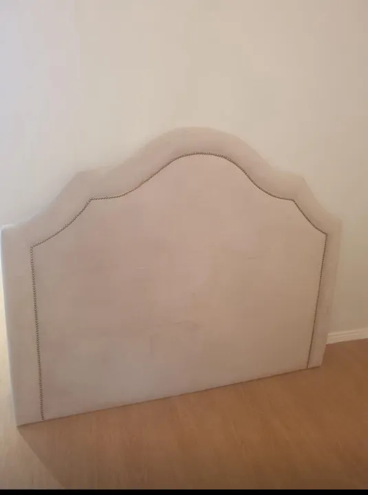 Cabeceira de cama casal em ótimo estado, com design elegante e atemporal. Perfeita para renovar o visual do seu quarto e trazer um toque de sofisticação. Cabeceira de veludo clássica cor bege com taxas douradas Para cama casal Queen Medidas 1,65 x 1,30 Valor R$ 450