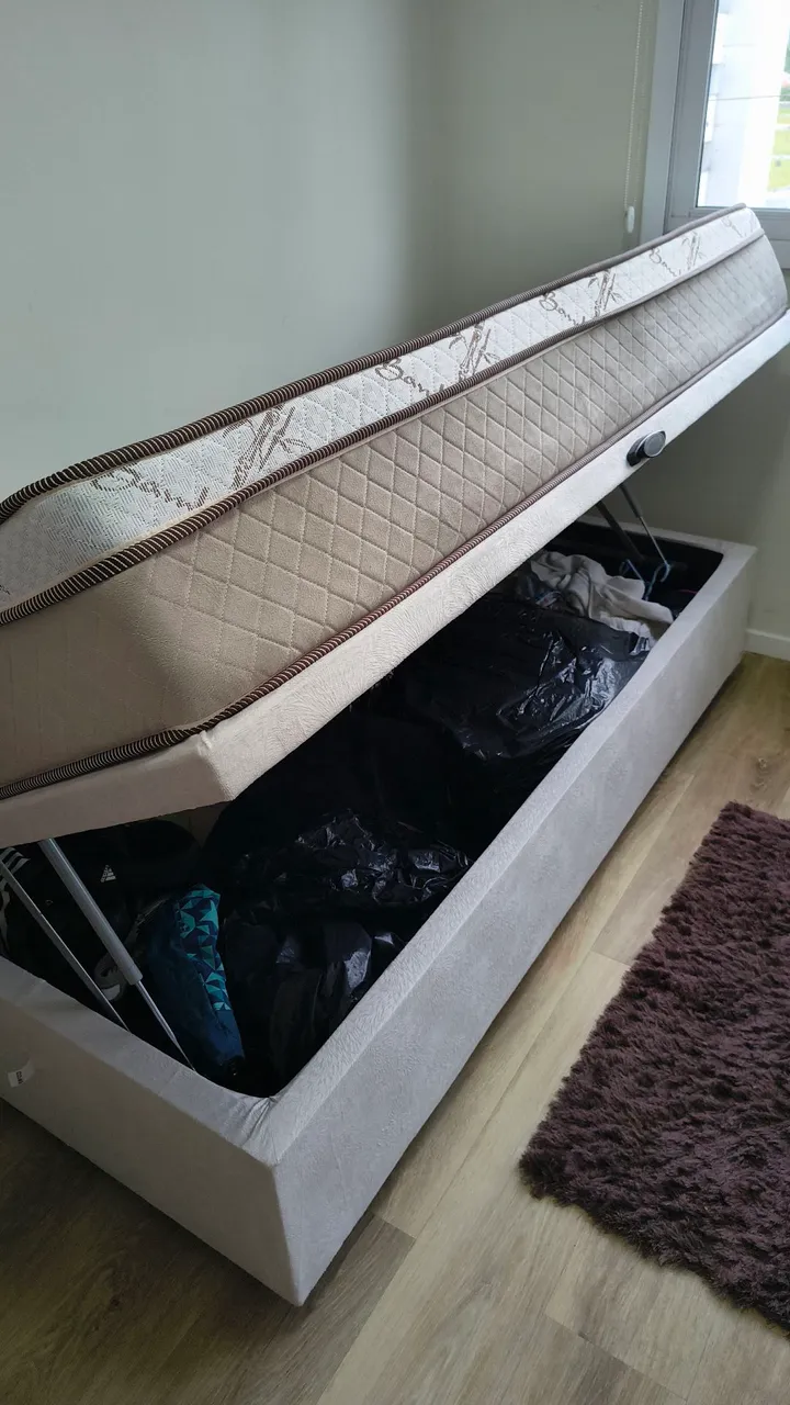 Cama box de solteiro com baú, ideal para otimizar espaço e organizar seus pertences. Conforto e praticidade em um só produto!