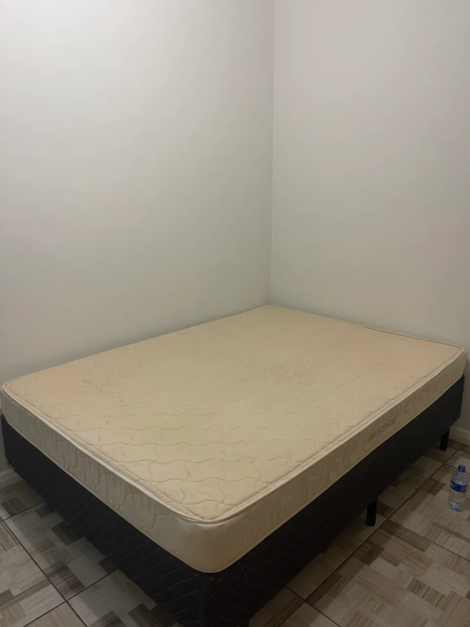 Cama completa com colchão de molas semi nova, perfeita para noites de sono tranquilas e confortáveis. O colchão oferece suporte ideal e o design moderno da cama complementa qualquer quarto.