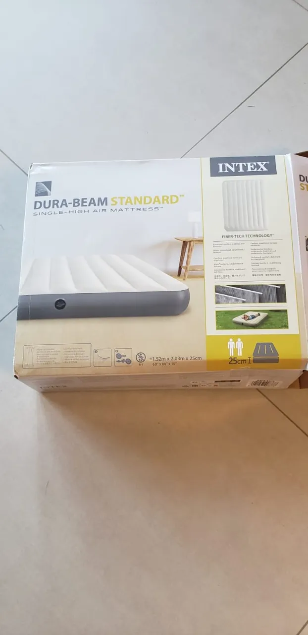 Desfrute de noites de sono tranquilas com o Colchão Inflável Intex! Conforto garantido com tecnologia Fiber-Tech, ideal para relaxar e recarregar as energias. Leve e fácil de transportar, perfeito para casa ou viagens. Usado apenas 1 vez, mas ficou grande para minha barraca, por isso a venda. Comprado em 31/01/2026, tenho nota fiscal. Tenho duas unidades, uma unidade é R$160,00 e levando as duas faço por R$300,00.
