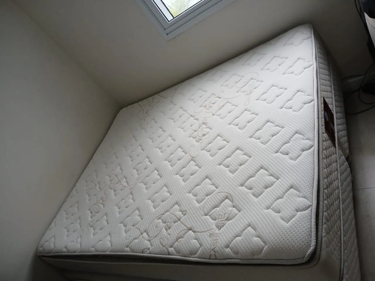 Comprado em 2020, usado como cama principal até 2023, e desde então é o colchão do quarto de visitas.