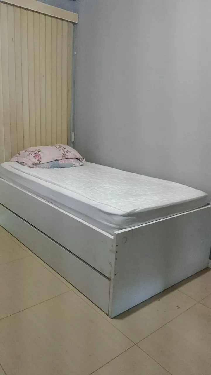 Cama solteiro com gavetas, ideal para otimizar espaço e oferecer conforto. Perfeita para quartos pequenos ou para receber visitas.