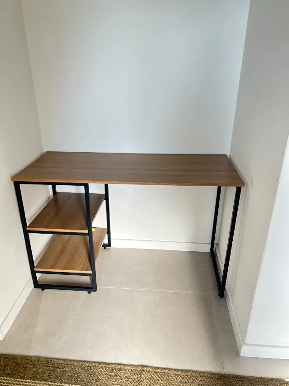 Linda escrivaninha com design moderno, perfeita para seu escritório ou quarto. Possui prateleiras para organização, ideal para otimizar o espaço e deixar tudo ao seu alcance. Possui 1,25cm de comprimento e 45cm de profundidade.