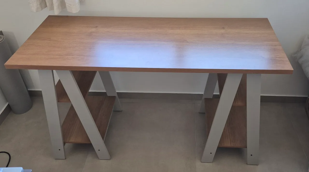 Linda escrivaninha cavalete, perfeita para seu escritório ou quarto. Design moderno e funcional, ideal para estudos e trabalho.