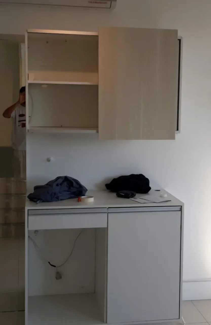 escrivaninha e móvel aéreo de mdf