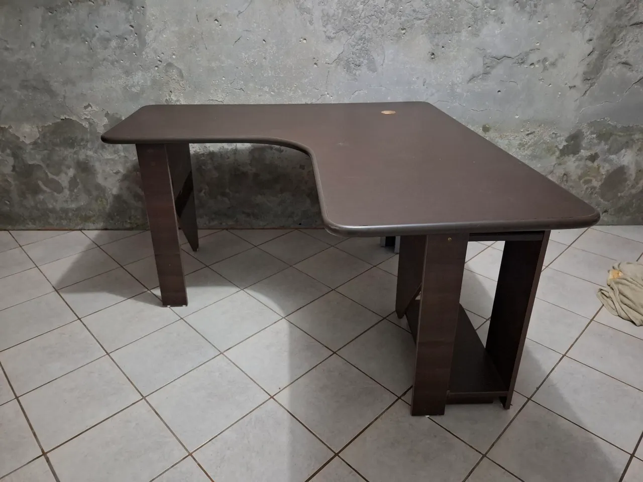 Escrivaninha em L espaçosa e funcional, ideal para escritorio, home office, setup gamer... esta em perfeito estado e ja desmontada. Medidas: 140cm x 140cm, 74cm de altura.