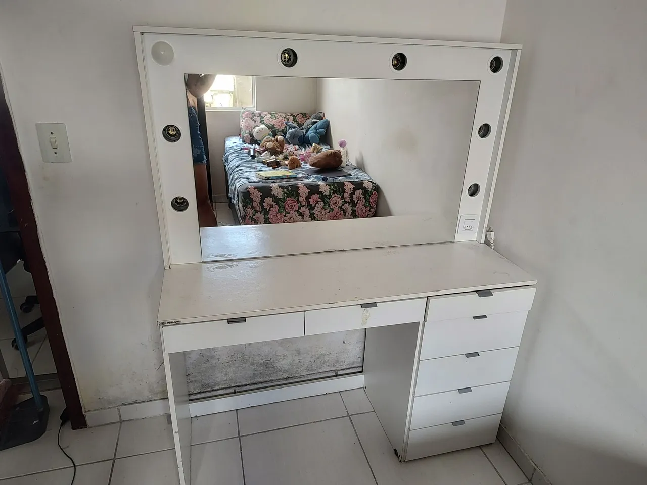 Linda penteadeira perfeita para organizar seus cosméticos e maquiagens. Com design moderno e elegante, ela possui espelho com iluminação, gavetas espaçosas e um visual incrível. Deixe seu cantinho de beleza ainda mais charmoso!