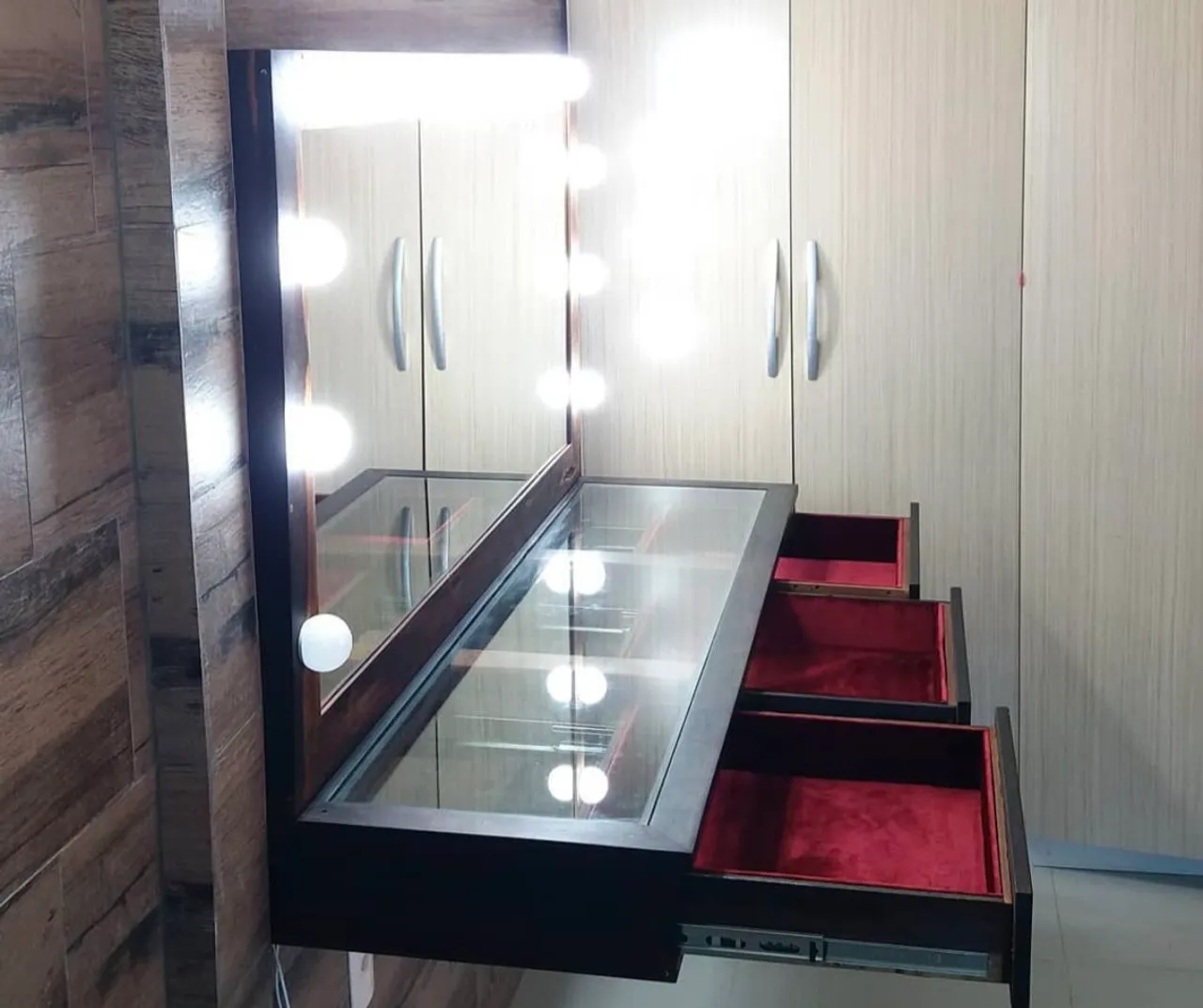 Linda penteadeira com design rustico e funcional, perfeita para organizar seus cosméticos e itens de beleza. Ideal para quem busca praticidade e elegância no dia a dia.