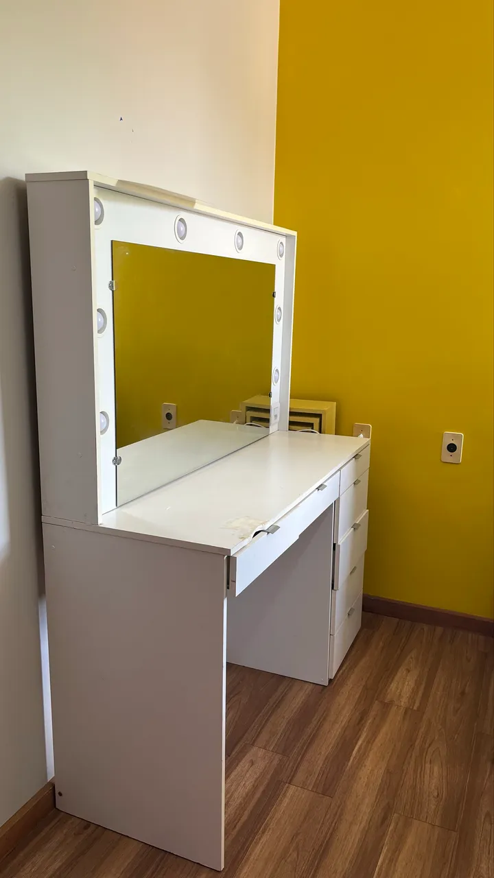 Penteadeira grande, com lâmpadas e gavetas. Com um quebradinho. Buscar no Córrego Grande