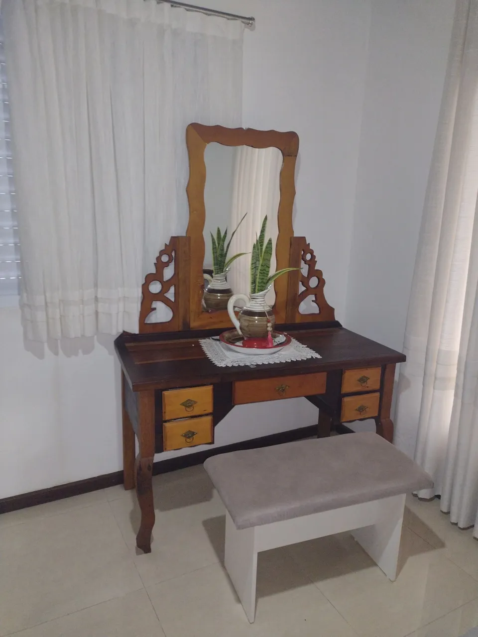 Linda penteadeira rústica, perfeita para adicionar um toque de charme e elegância ao seu quarto. Feita com madeira de alta qualidade, esta penteadeira combina funcionalidade e estilo, oferecendo amplo espaço para organizar seus itens de beleza.