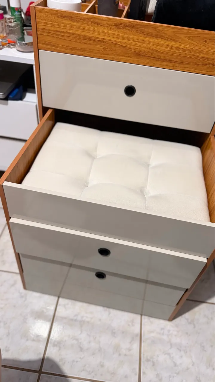 Linda penteadeira semi nova, perfeita para organizar seus cosméticos e deixar seu cantinho ainda mais charmoso. Design moderno e funcional, ideal para quem busca beleza e praticidade no dia a dia.