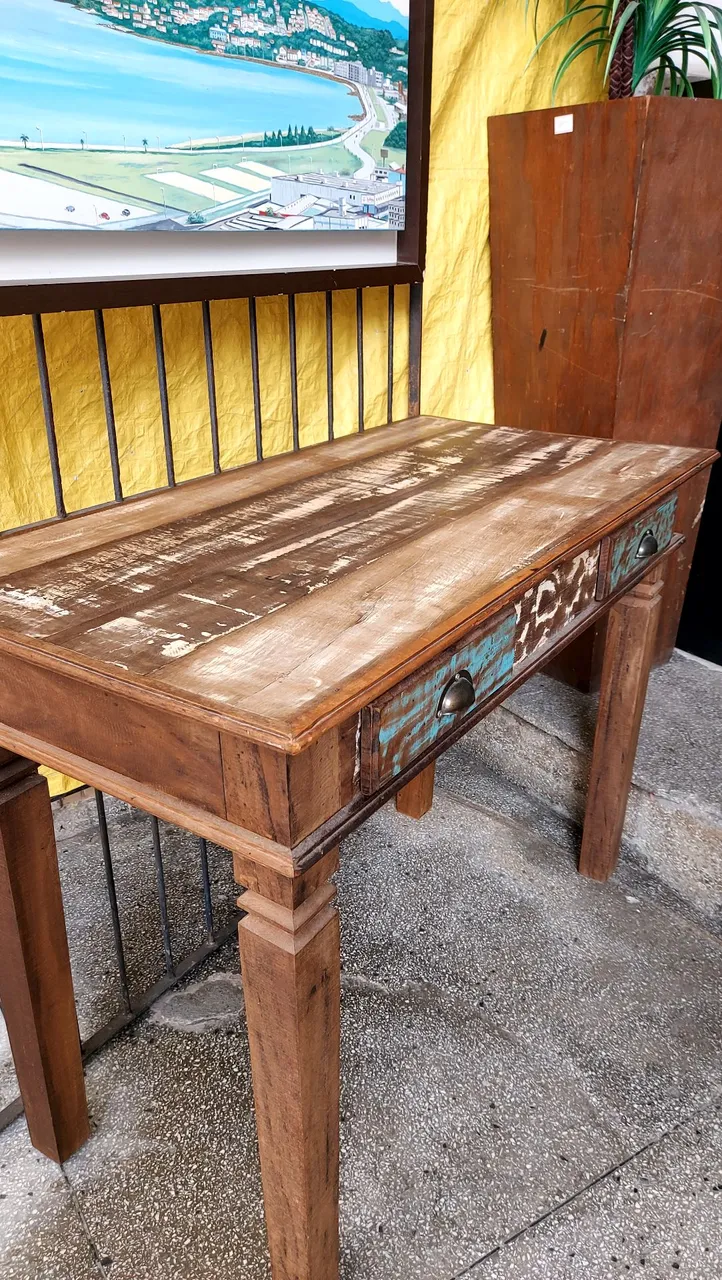Aparador de madeira com design rústico e detalhes em azul. Perfeito para dar um toque especial à sua sala de estar ou hall de entrada. Lindo aparador em madeira comprimento 1.10 profundidade 50 altura 80. Entregamos no local. Valor 900 em 6 × no cartão ou avista 800 reais