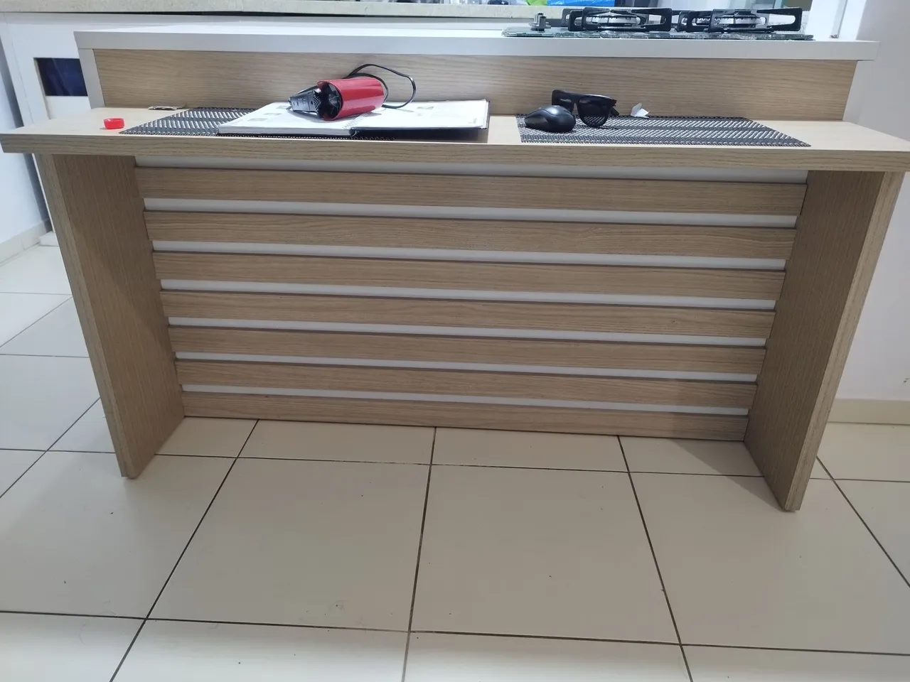 Linda bancada em madeira, perfeita para sua cozinha ou área gourmet. Design moderno e funcional, ideal para otimizar o espaço e adicionar um toque de elegância ao ambiente.
