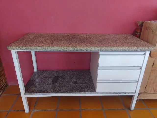 Bancada de marmore com gaveteira. Profundidade 65cm Largura 154cm Altura 93cm Sò pix o dineiro, nao entrego!