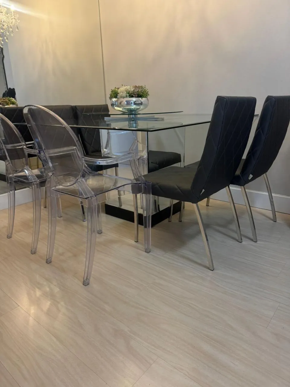 ? Mesa de jantar com 6 cadeiras (6 lugares podendo fazer de 8 lugares)