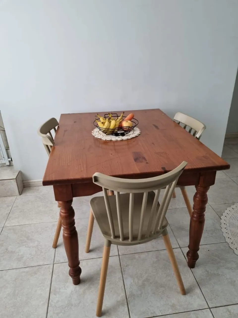 Linda mesa com 4 cadeiras. Mesa em madeira, em otimo estado. Cadeiras novas.