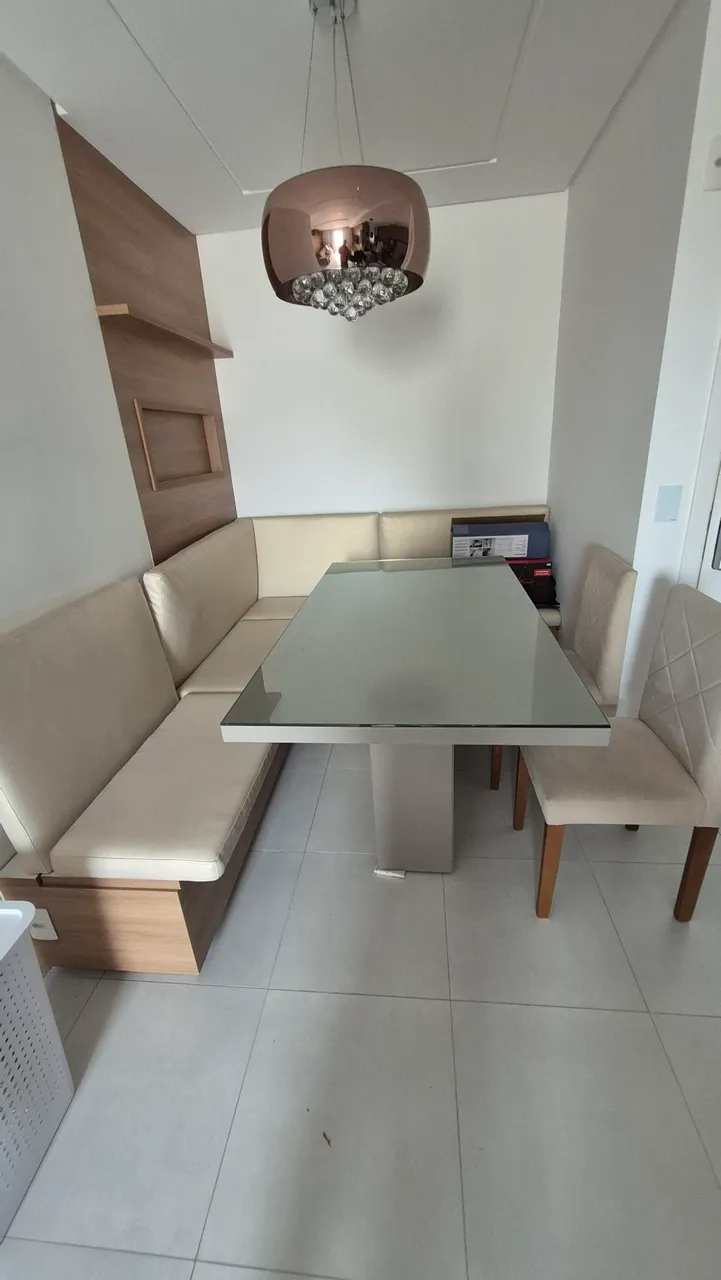 Mesa para 6 lugares com banco alemão, com mais 3 cadeiras.