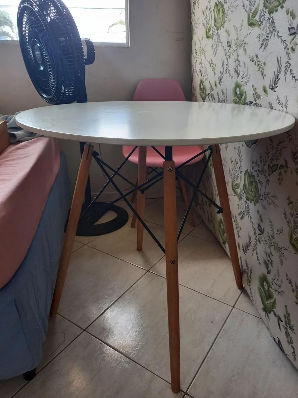 Linda mesa redonda com design moderno, perfeita para diversos ambientes. Ideal para refeições, estudos ou trabalho. Seu tampo branco e pés em madeira trazem um toque de elegância e sofisticação para o seu espaço.