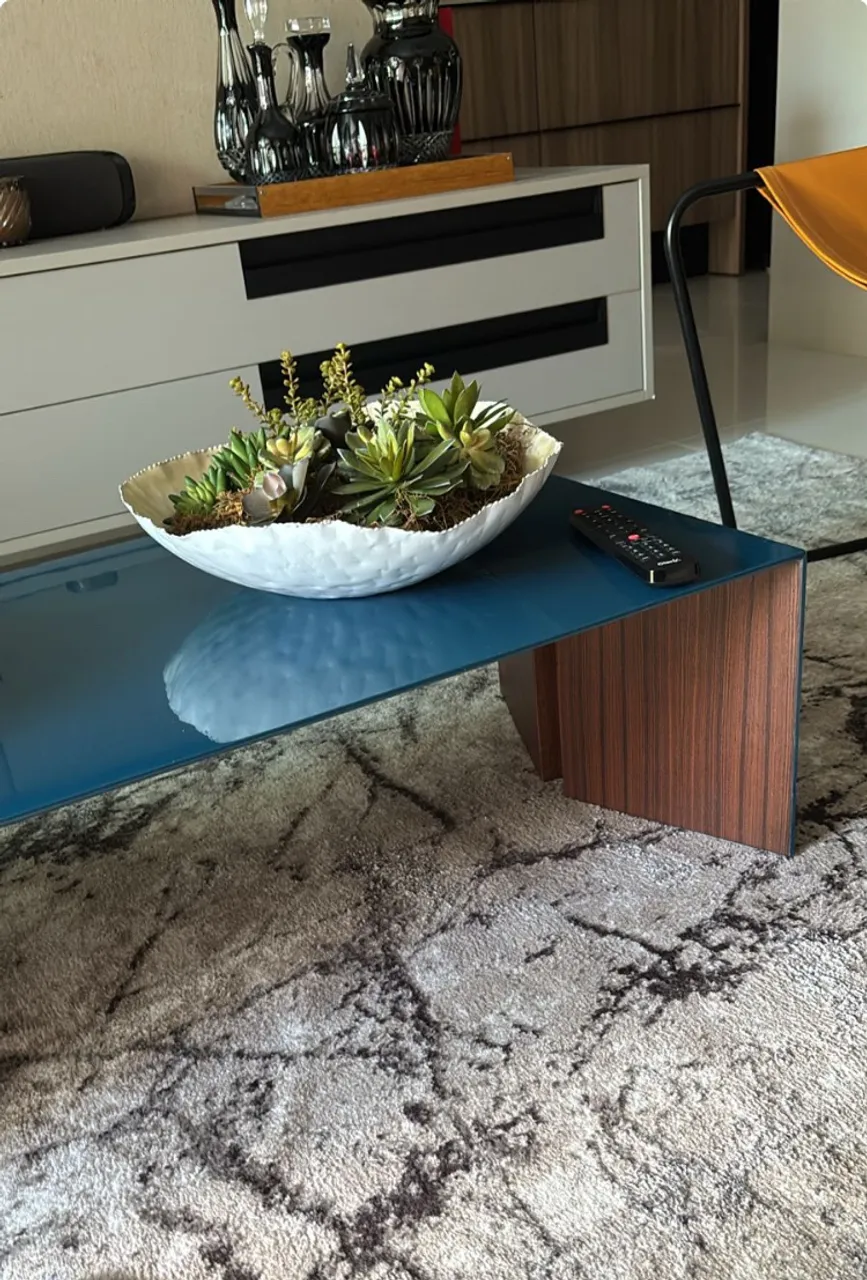 Apresentamos esta mesa de centro contemporânea, perfeita para quem deseja elevar a decoração com elegância, modernidade e personalidade. Seu design sofisticado, aliado às cores vibrantes (laca azul e madeira escura por dentro), transforma o ambiente e faz da peça o verdadeiro centro das atenções.