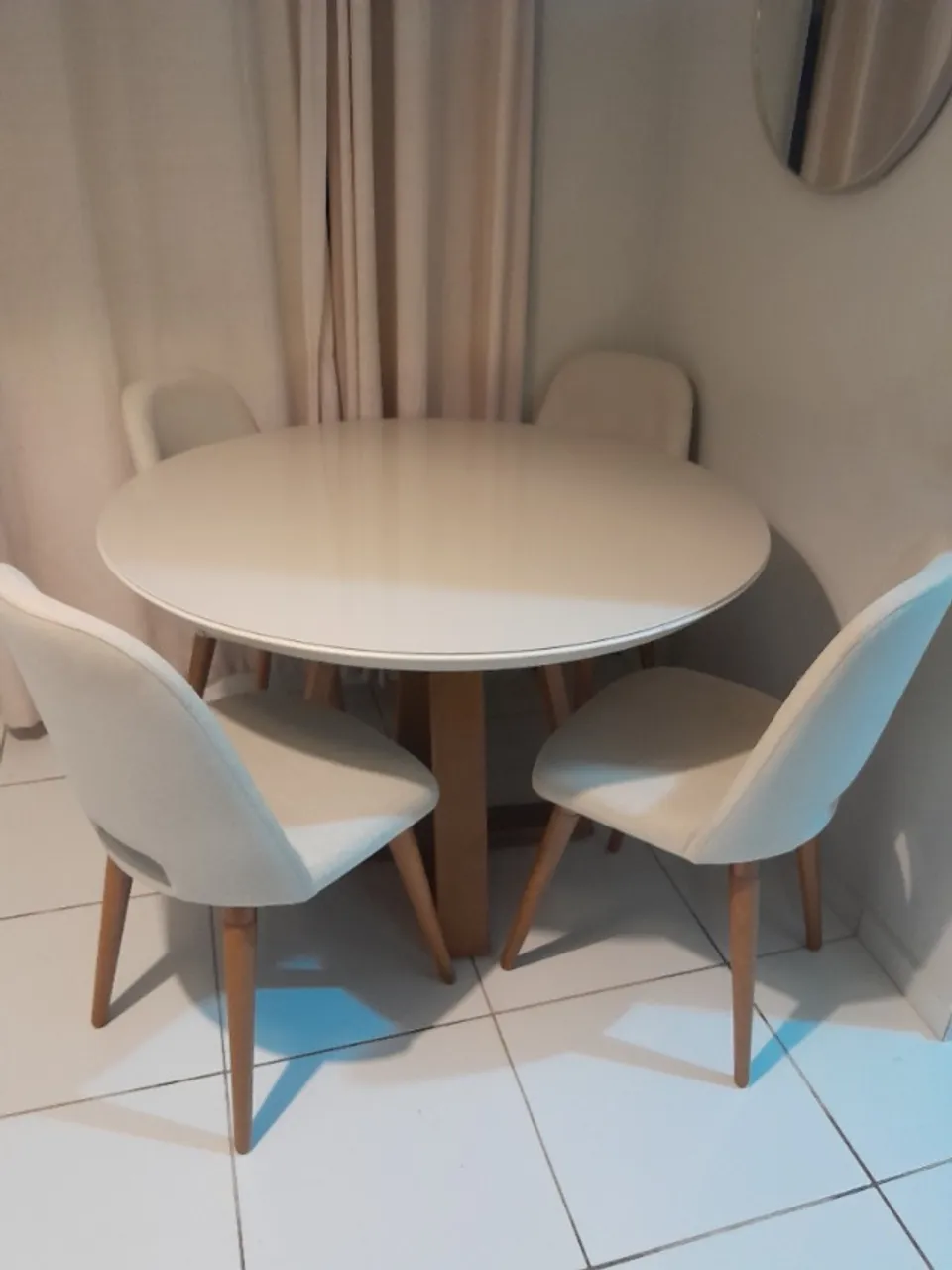 Linda mesa de jantar com 4 cadeiras, perfeita para sua casa! Design moderno e elegante, ideal para reunir a família e amigos em momentos especiais.