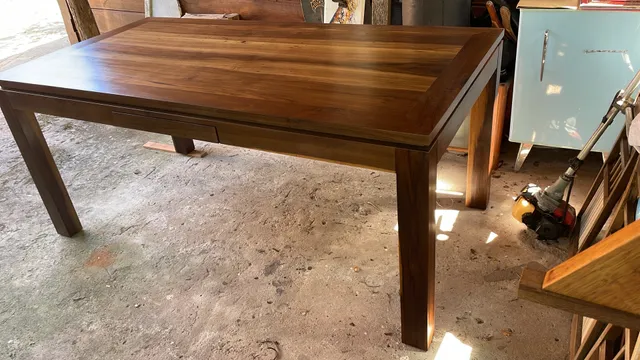 Mesas produzidas sob encomenda com madeiras nobres provenientes de demolição.
