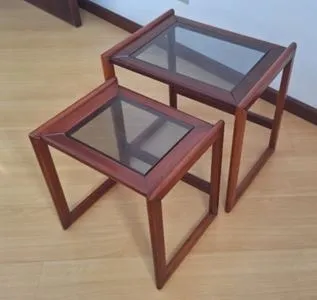 Mesinhas de canto em madeira e vidro. Medidas: Mesa maior - largura - 45cm - profundidade - 35cm - altura - 42com Mesa menor - largura - 37cm - profundidade - 30cm - altura - 37cm Retirada no local: Bairro Saco dos Limões - Florianópolis